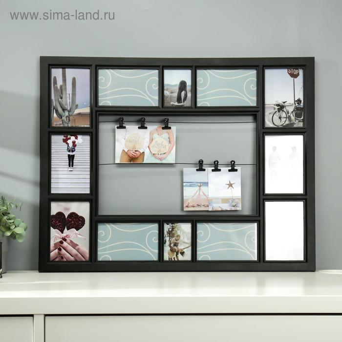Фоторамка пластик на 15 фото 7х10, 10х15 см "Семейная история" чёрная 63х50,5х2,5 см