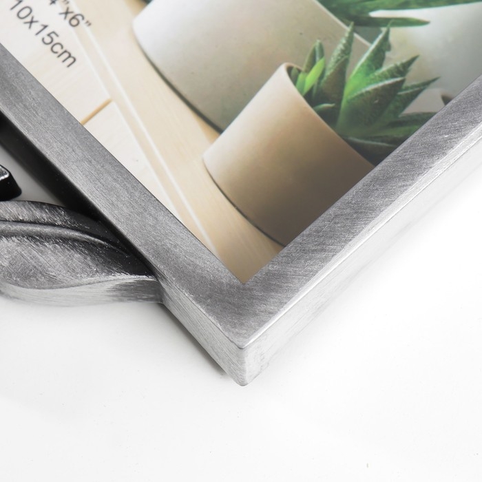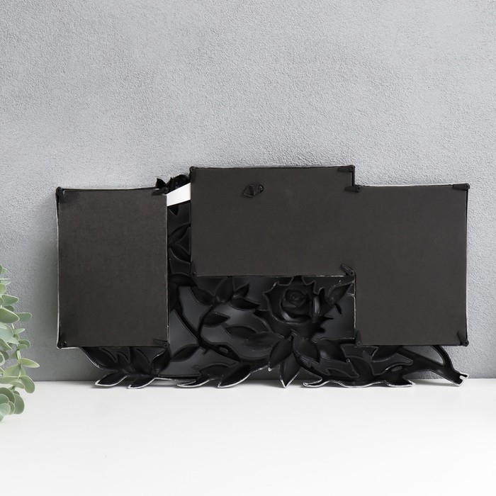 Фоторамка пластик на 3 фото 10х15 см "Роза в листьях" состаренное серебро 40х21,5 см