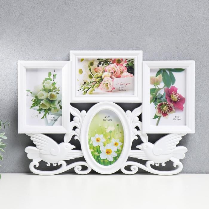 Фоторамка пластик на 4 фото 10х15 см "Голуби" белая 29х42,5 см
