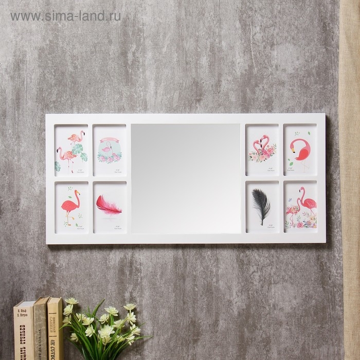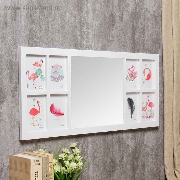Фоторамка пластик на 8 фото 10х15 см+зеркало 29,5х30 см "Стиль" белая 34,5х74 см