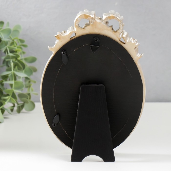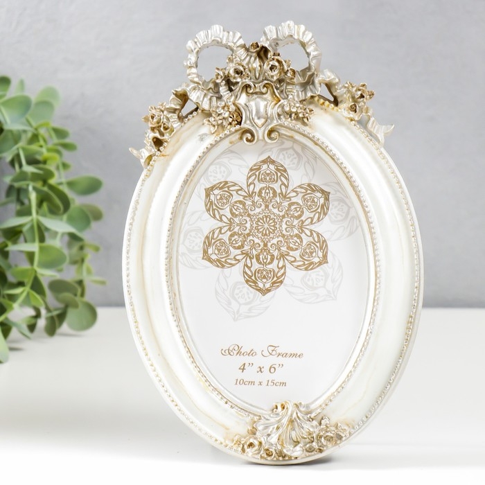 Фоторамка полистоун 10х15 см "Бант и медальон" белая с золотом 21х14 см