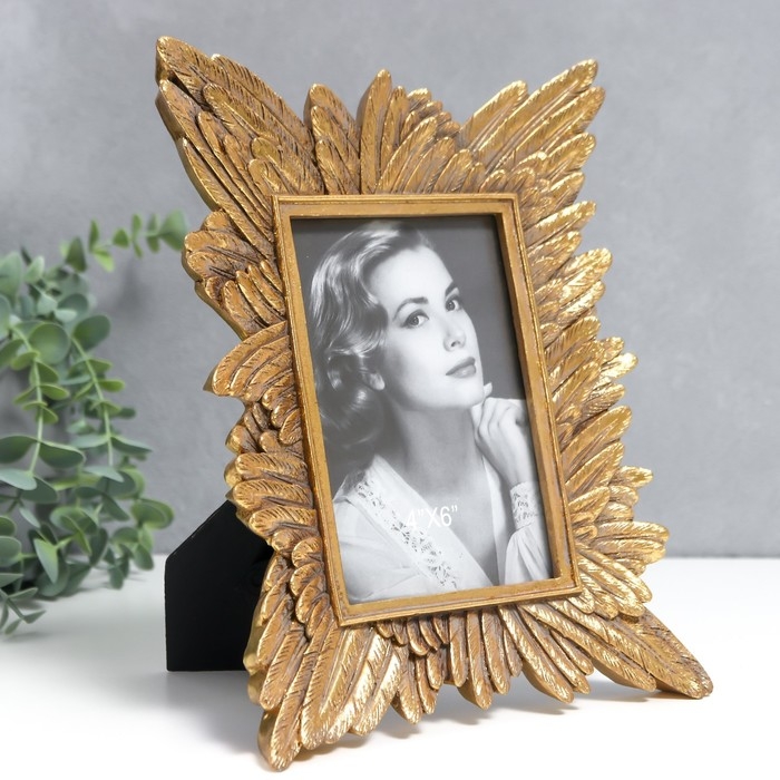 Фоторамка полистоун 10х15 см "Пёрышки" золото 19х25,5 см
