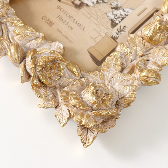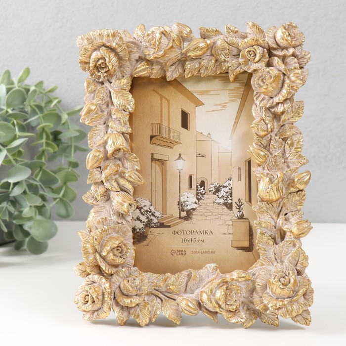 Фоторамка полистоун 10х15 см "Пионовидные розы" золотистая состаренная 16,6х2,9х21,3 см