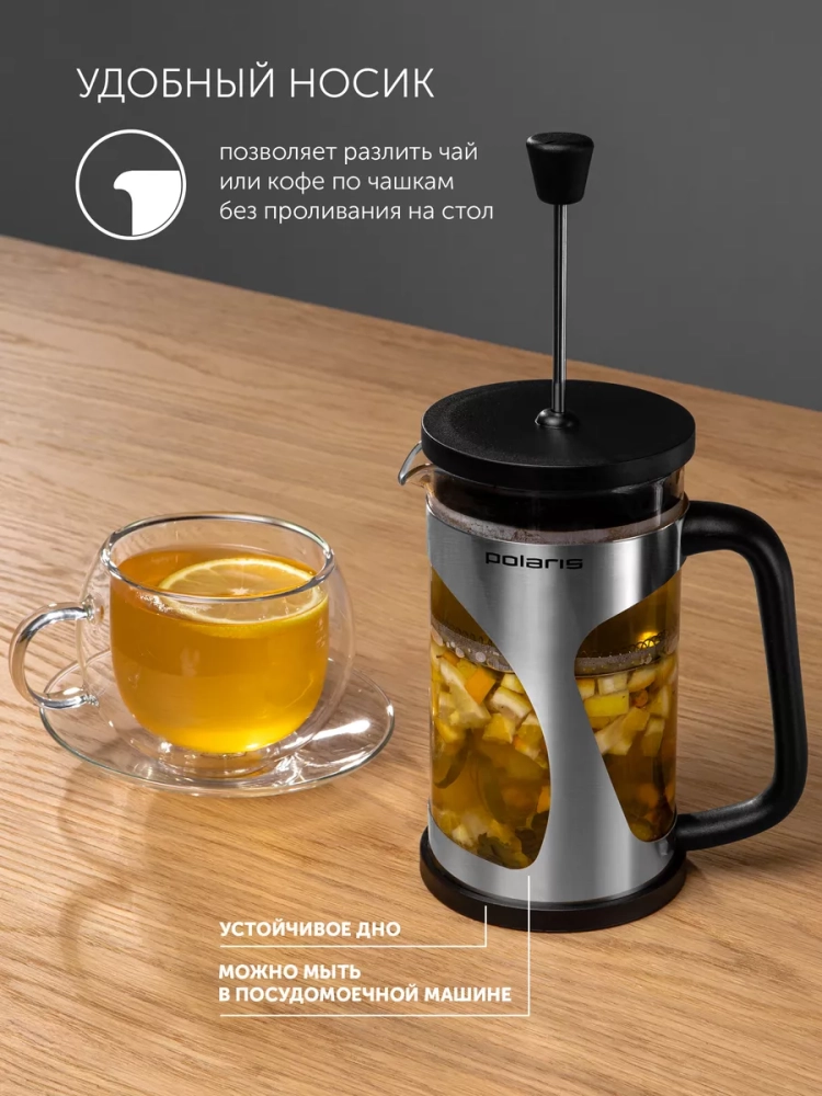 Не отказывайте себе в удовольствии каждое утро начинать с чашечки вкусного кофе, приготовленного с помощью френч-пресса от Поларис!