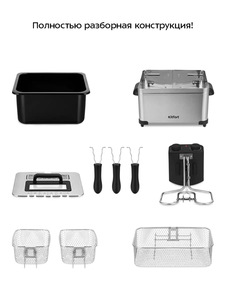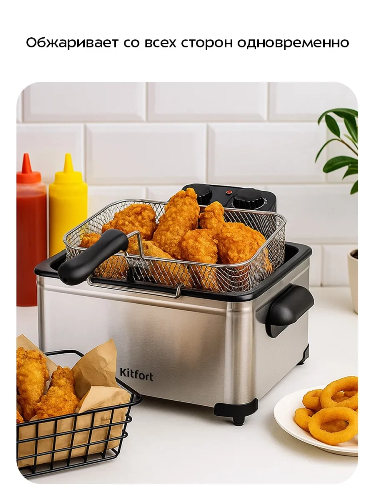 Фритюрница Kitfort КТ-6901 предназначена для приготовления продуктов в горячем масле. Прибор позволит вам в домашних условиях приготовить любимые блюда: картофель фри, пончики, чебуреки или куриные крылышки. Также во фритюрнице можно жарить овощи, рыбу, мясо и морепродукты в кляре и без.