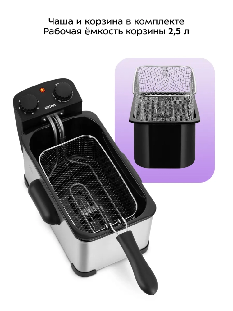 Выбирая Kitfort, вы выбираете качество и надежность, которые делают вашу кухню местом для кулинарных экспериментов и наслаждения. Эта бытовая техника станет незаменимым помощником в приготовлении любимых блюд, будь то картофель фри, жареный лук или другие кулинарные изыски.