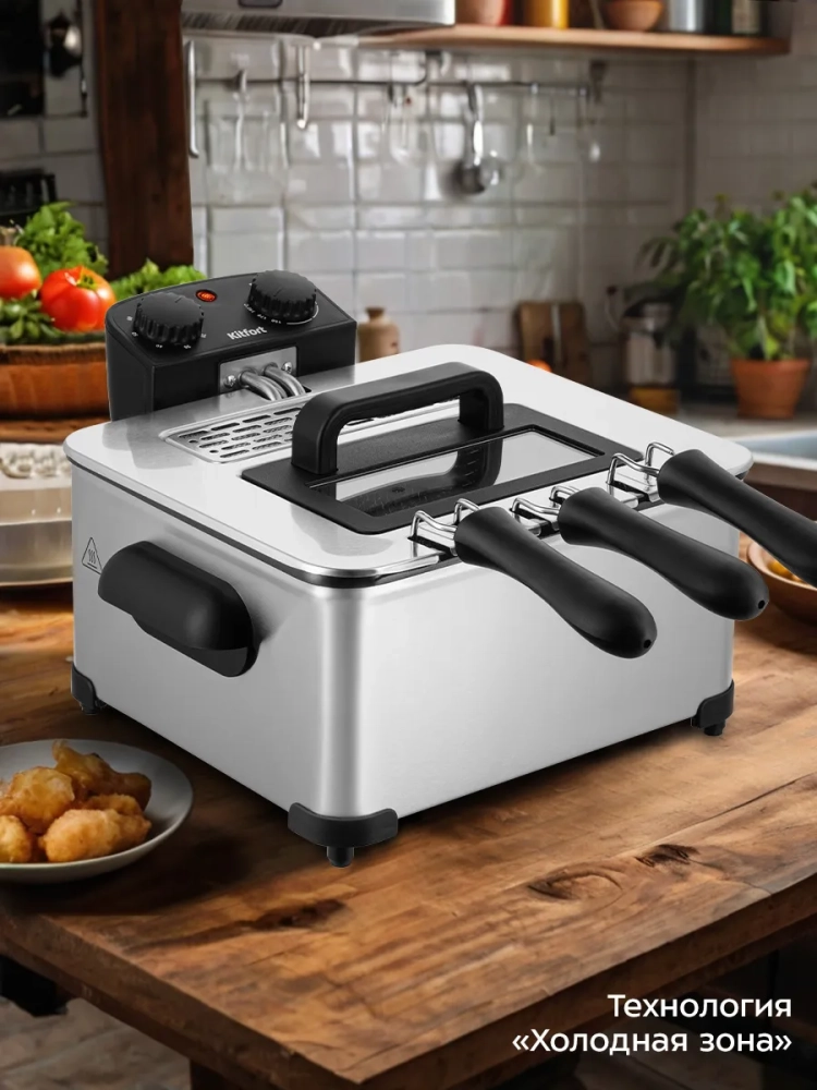 Эта техника от Kitfort — это гарантия качества и долговечности. Электрическая фритюрница с функцией защиты от брызг и удобной системой хранения станет вашим надежным помощником в приготовлении вкусных и разнообразных блюд.