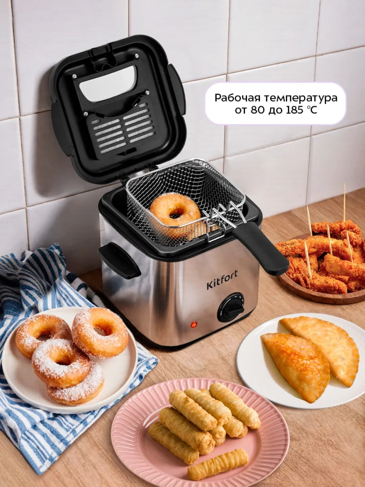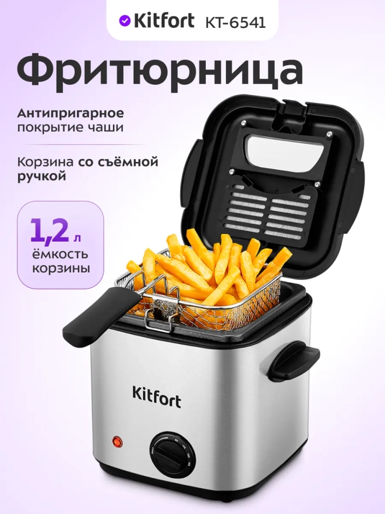 Фритюрница Kitfort КТ-6541 предназначена для приготовления продуктов в горячем масле. Прибор позволит вам в домашних условиях приготовить любимые блюда: картофель фри, пончики, чебуреки или куриные крылышки. Также во фритюрнице можно жарить овощи, рыбу, мясо и морепродукты в кляре и без него.