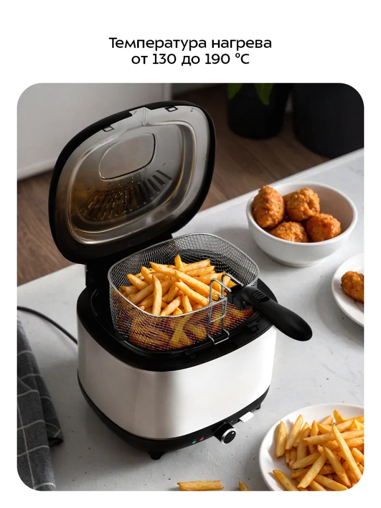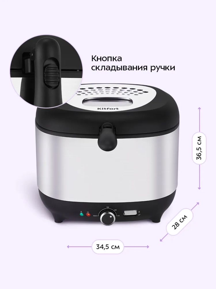 Фритюрница Kitfort KT-6838 предназначена для приготовления продуктов в горячем масле. Прибор позволит вам в домашних условиях приготовить любимые блюда: картофель фри, пончики, чебуреки или куриные крылышки. Также во фритюрнице можно жарить овощи, рыбу, мясо и морепродукты в кляре и без него.