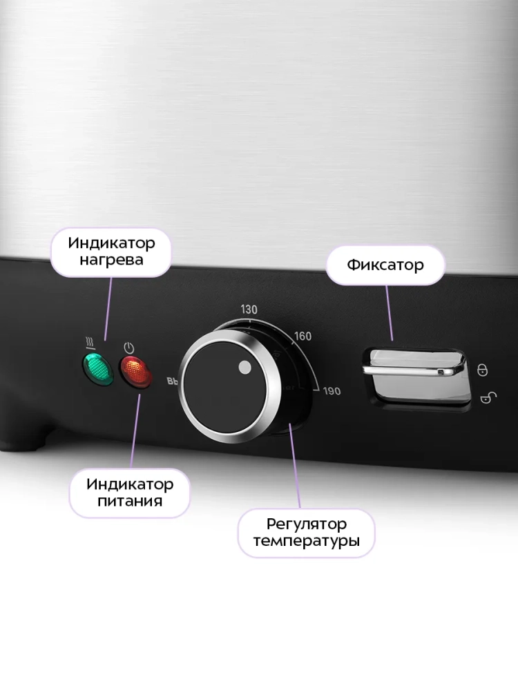 С помощью регулятора температуры можно установить температуру нагрева 130–190 °С.