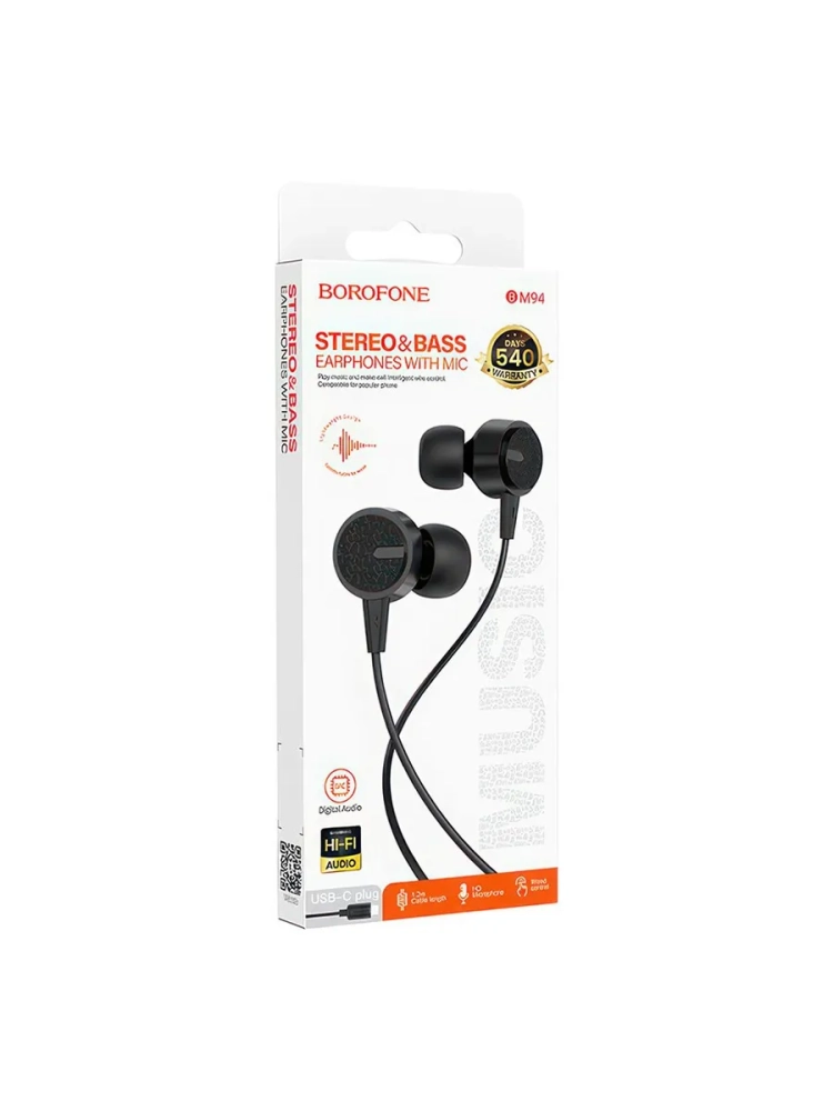 Гарнитура BOROFONE BM94 Sonar Type-C, внутриканальная, громкость +/-, 1.2м (черный)