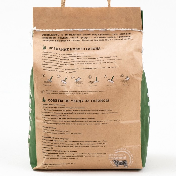 Специально адаптированный к климату центрального региона России состав семян. Отличное решение для дачного участка, прекрасно подойдет для пикников и игр на воздухе. Предназначен для российских погодных условий, устойчив к заморозкам и засухе. Может расти на разных типах почв. К теплу предъявляет невысокие требования. Семена начинают прорастать при температуре 5-7 градусов. Сеять лучше в заранее подготовленный почвогрунт, перекопать и разровнять граблями, разбив крупные комья земли.