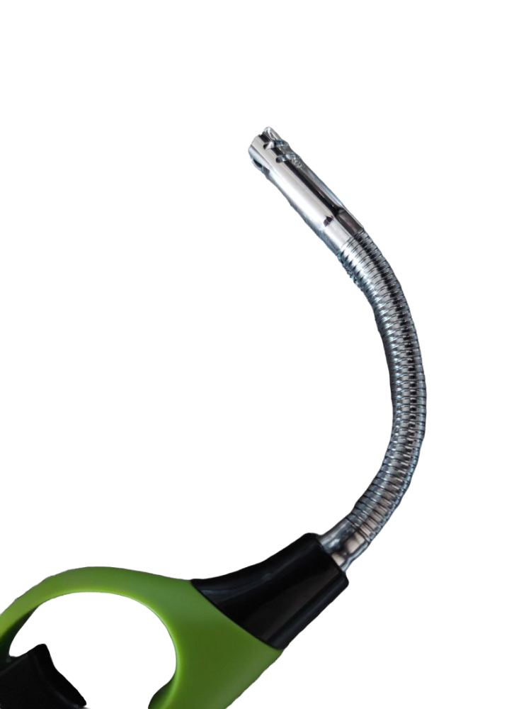 Изгибающийся носик зажигалки можно легко настроить под разные углы, что делает её незаменимой для доступа к труднодоступным местам. При необходимости устройство можно многократно заправлять газом, что делает его экономичным вариантом. Также предусмотрено отверстие для подвешивания, что упрощает хранение.