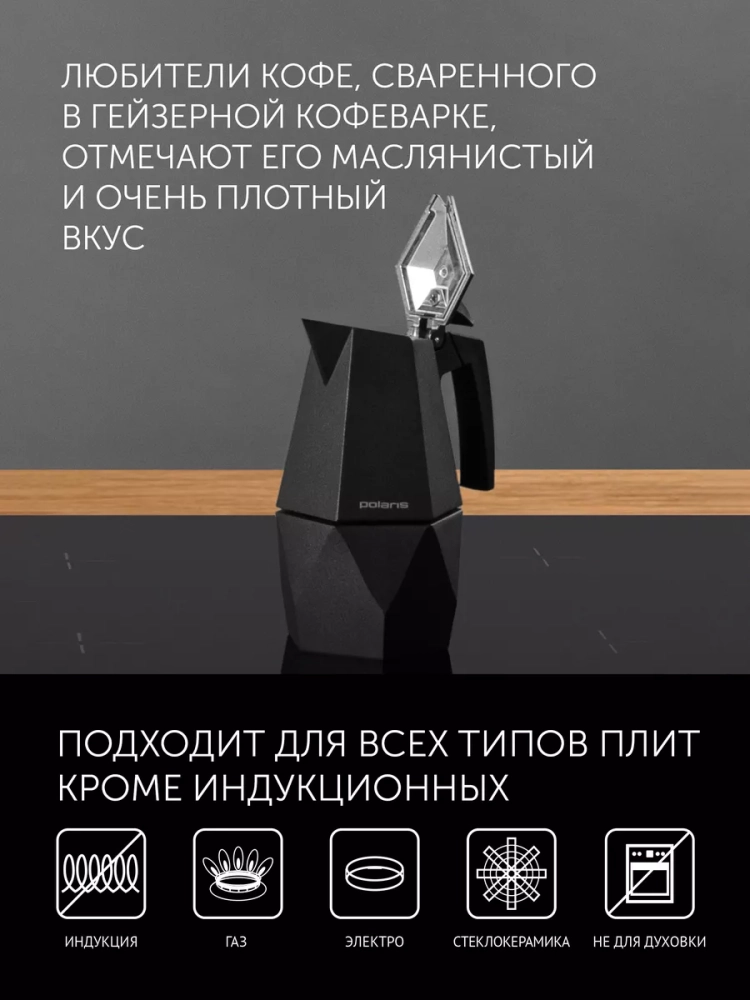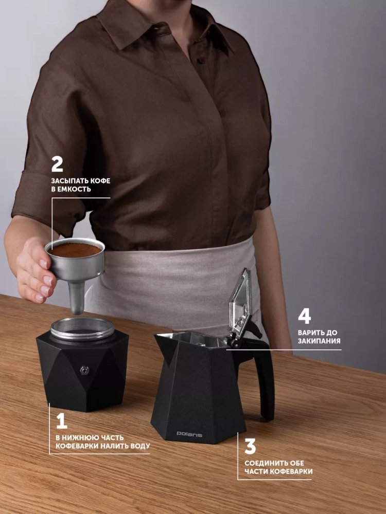 Гейзерная кофеварка Kontur 4С от Polaris станет одним из лучших приобретений для ценителей настоящего вкусного кофе. Вы сможете приготовить ароматный напиток прямо у себя дома и наслаждаться идеальным вкусом натурального молотого арабика или турецкого кофе.