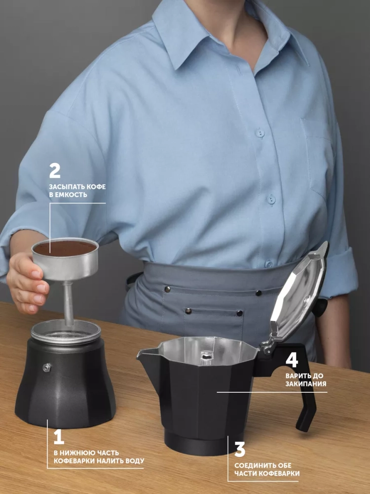 Алюминиевый Кофейник – идеальный выбор для любителей эспрессо. Он намного удобнее, чем металлическая или керамическая турка, ведь с ним не нужно следить за процессом приготовления напитка и бояться испачкать кухню.