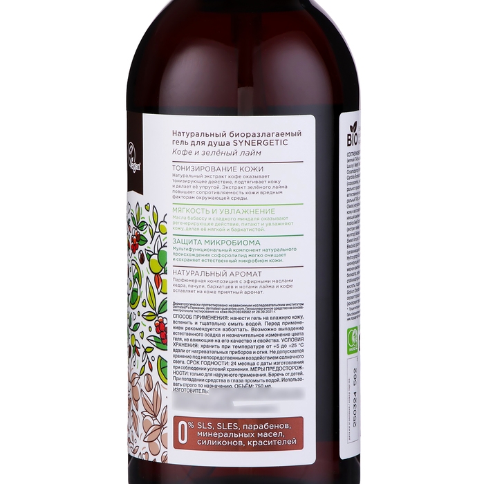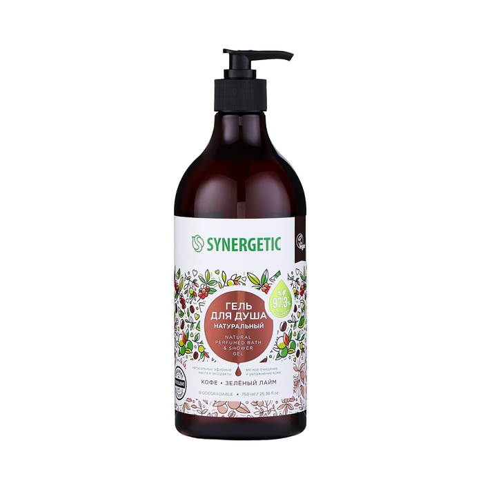 Гель для душа биоразлагаемый SYNERGETIC кофе и зеленый лайм, 750 мл