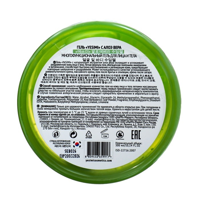 Гель для лица и тела YeSiMi многофункциональный с экстрактом алоэ вера, 300 мл
