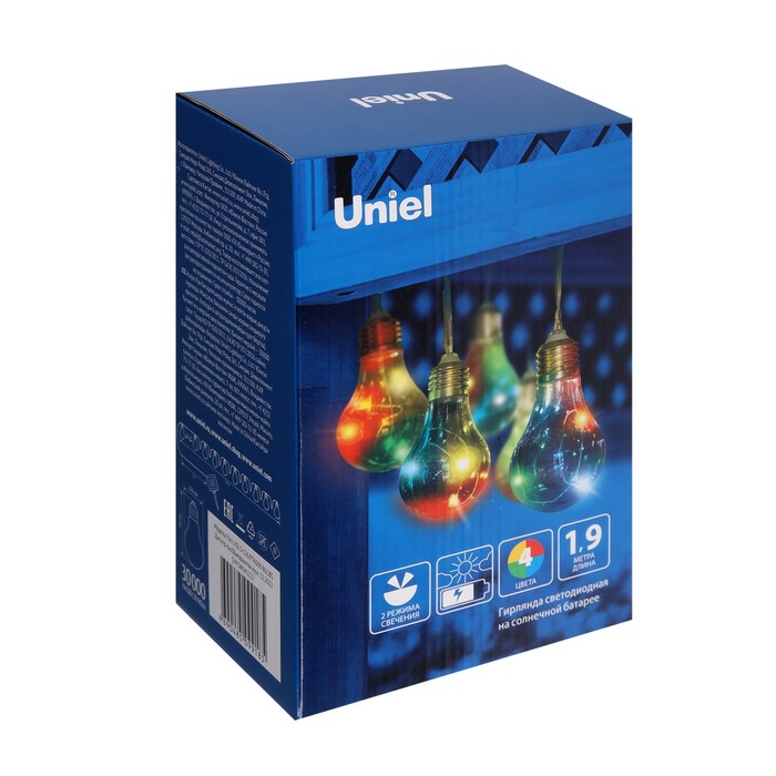 Гирлянда Uniel «Нить» 1.9 м с насадками «Лампочки», IP44, прозрачная нить, 10 лампочек, свечение мульти, 1 режим, солнечная батарея