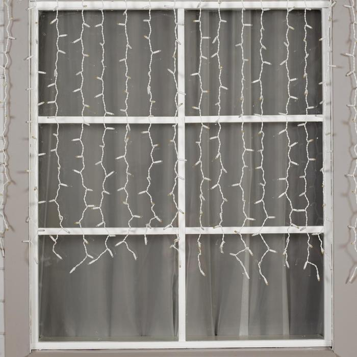 Гирлянда «Бахрома» 3 × 0.6 м, IP44, УМС, прозрачная нить, 160 SMD-LED, свечение тёплое белое, 220 В