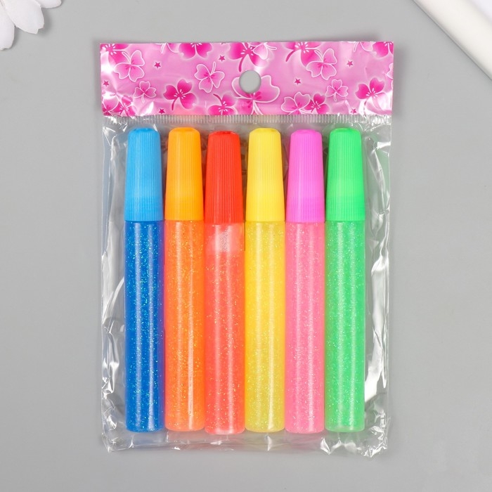 Глиттер клеевой набор 6 шт "Неоновый блеск" 12 грамм 10,5х8х1,2 см