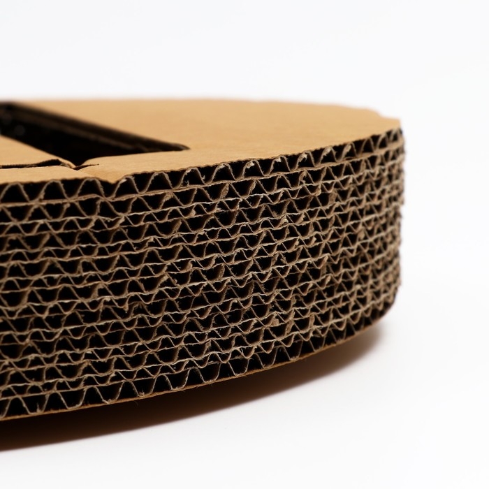 Она выполнена из гофрокартона, который изготовлен из природного материала - древесины и по своим свойствам очень на нее похож, чем и привлекают наших питомцев. Он достаточно плотен, чтобы выдержат острые коготки, и оптимально податлив, чтобы привлекать кошку.