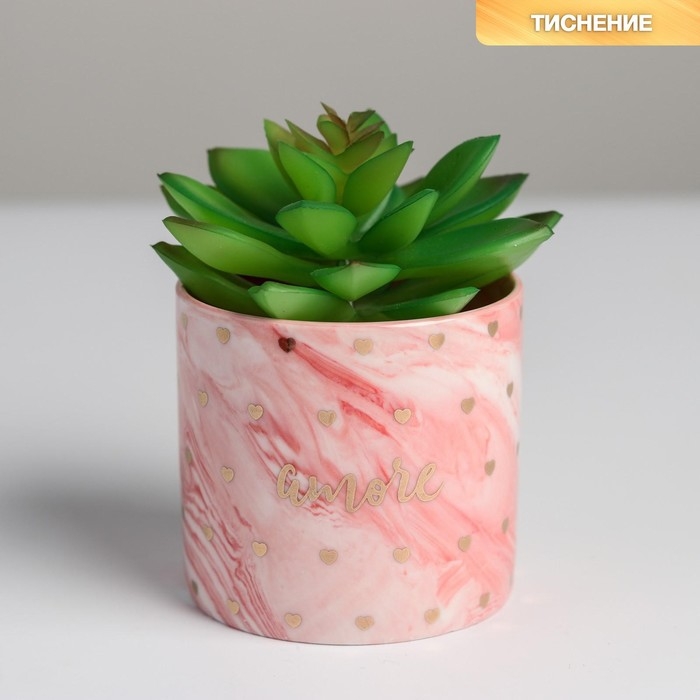 Горшок для цветов керамический с тиснением, кашпо «Сердца», 8 х 7,5 см