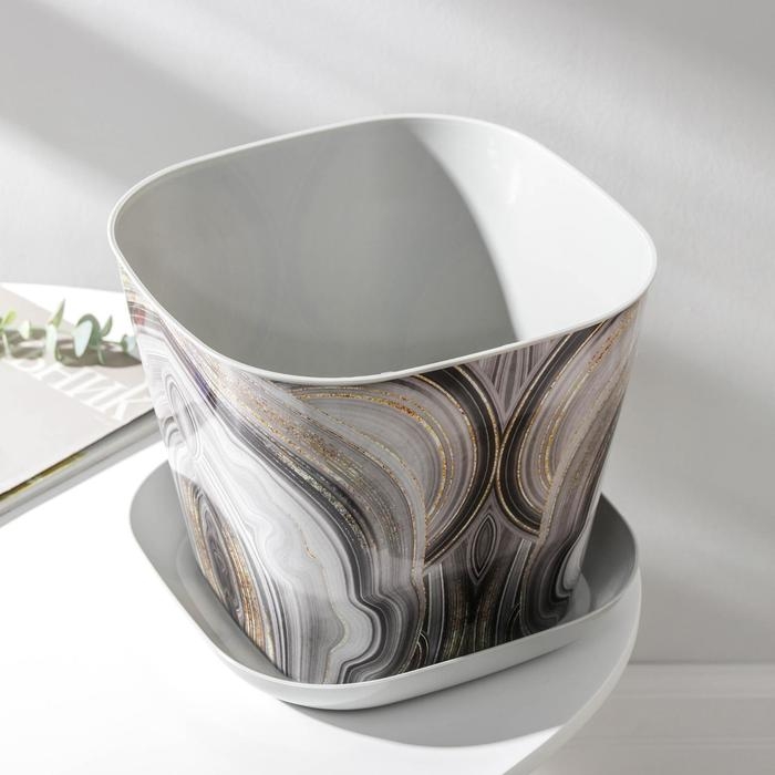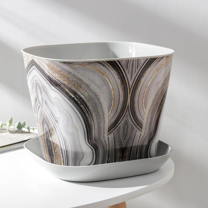 Горшок с поддоном «Мрамор», 7,3 л, цвет светло-серый