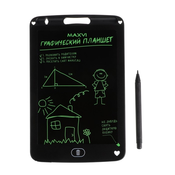 Графический планшет для рисования и заметок LCD Maxvi MGT-01, 8.5”, угол 160°,CR2016, черный