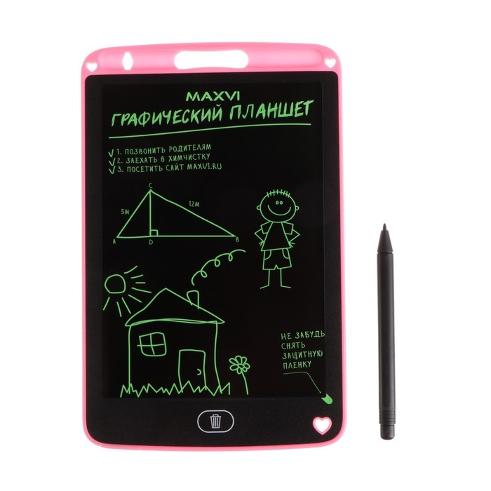 Графический планшет для рисования и заметок LCD Maxvi MGT-01, 8.5”,угол 160°,CR2016, розовый