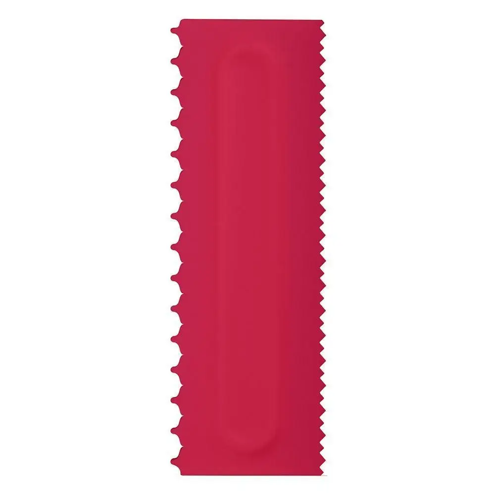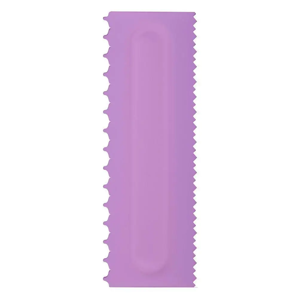 Для украшения торта и создания рельефной поверхности используется специальный кондитерский гребень. За счет фигурного края формируется рельеф на боковинах торта, гребнем можно распределять крем, мастику и марципан. Изделие имеет два фигурных края с мелкими и крупными зубцами.