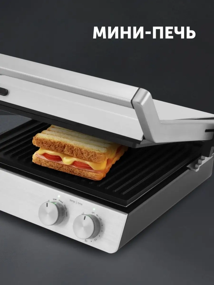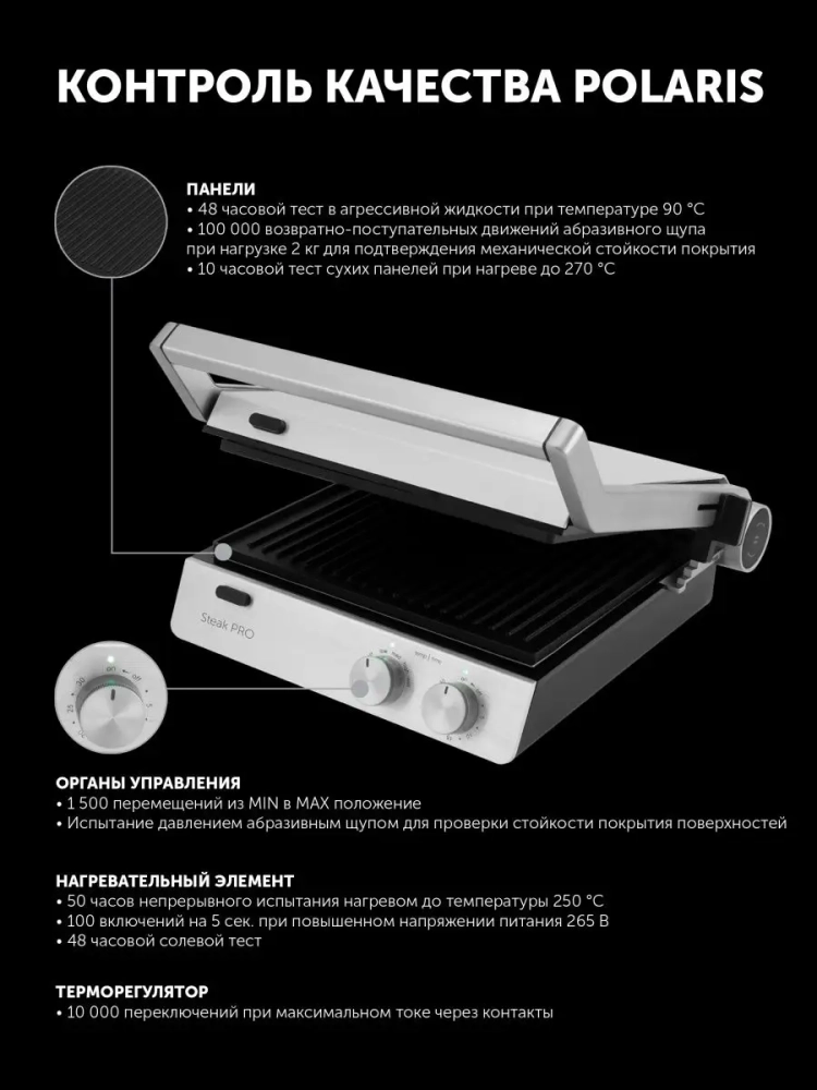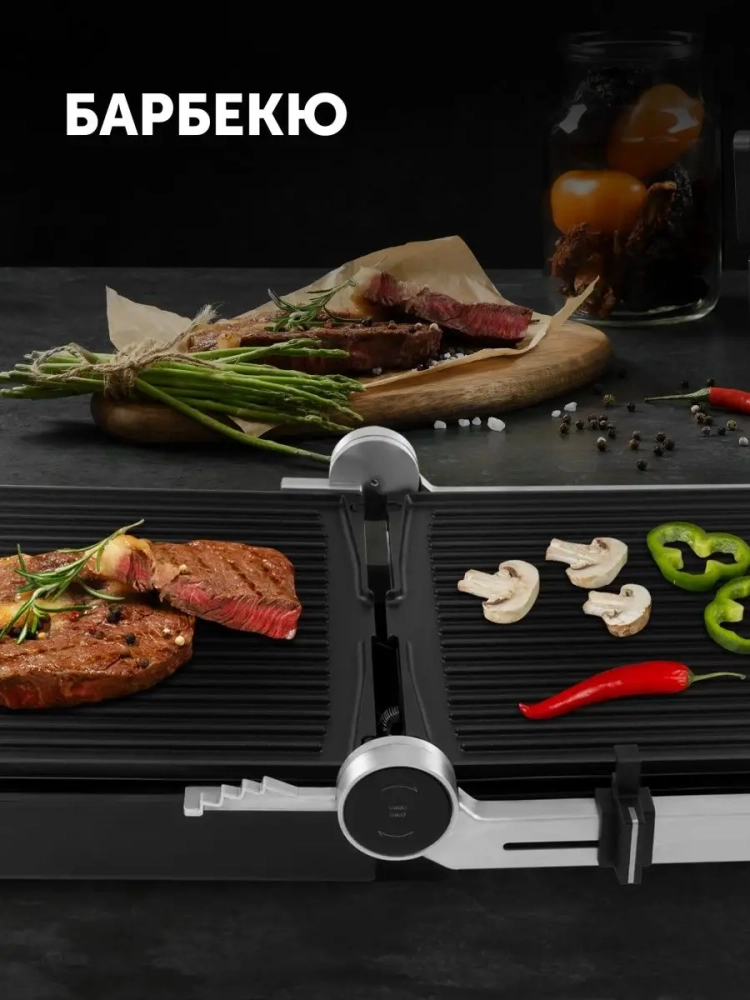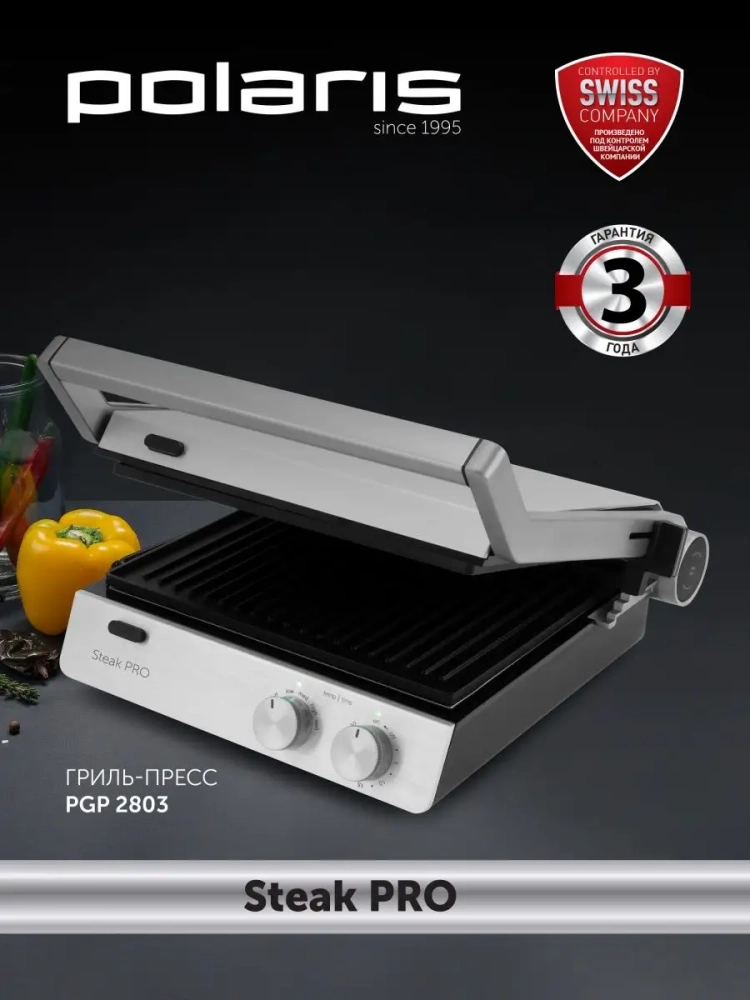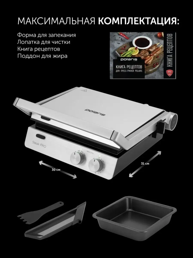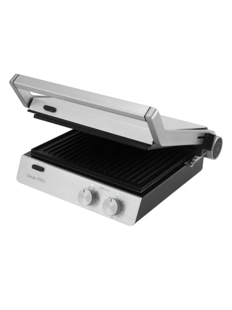 4 в 1 : Гриль, барбекю, мини-печь, духовка. Гриль линейки Steak Pro. Использование новых прогрессивных технологий. Панели со встроенными нагревательными элементами нового поколения обеспечивают быстрое и равномерное распределение тепла. На все грили линейки Steak Pro гарантия от производителя 3 года. Панели со встроенным нагревательным элементом (29*25,5 см) для быстрого нагрева и зажарки с корочкой. Панели можно мыть в посудомоечной машине. Таймер до 30 минут. Равномерный прогрев панелей до 240 градусов (4 режима). Максимальная комплектация: Съёмная панель для запекания; Лопатка для чистки; Книга рецептов. 2000 Вт.