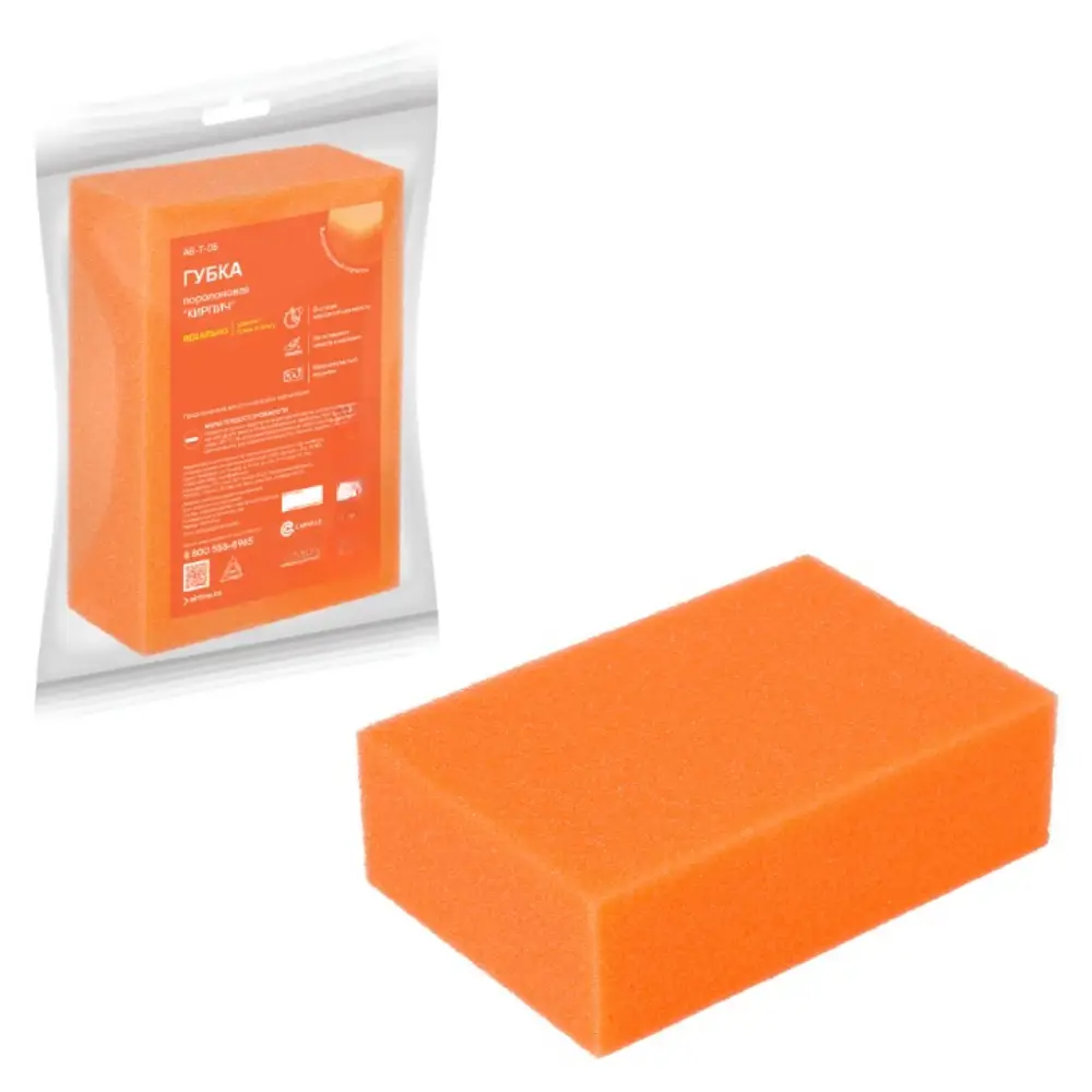 Губка поролоновая "Кирпич" оранжевого цвета прямоугольной формы, изготовленная из ВЫСОКОПРОЧНОГО мелкопористого поролона - это доступное и бюджетное средство для избавления от загрязнений на поверхности стекол, фар и корпуса автомобиля. Губка обладает особой поверхностью, которая легко и плавно очищает автомобиль, не создавая после уборки царапин или разводов. Губка обладает высокой влаговпитываемостью и легко отжимается.