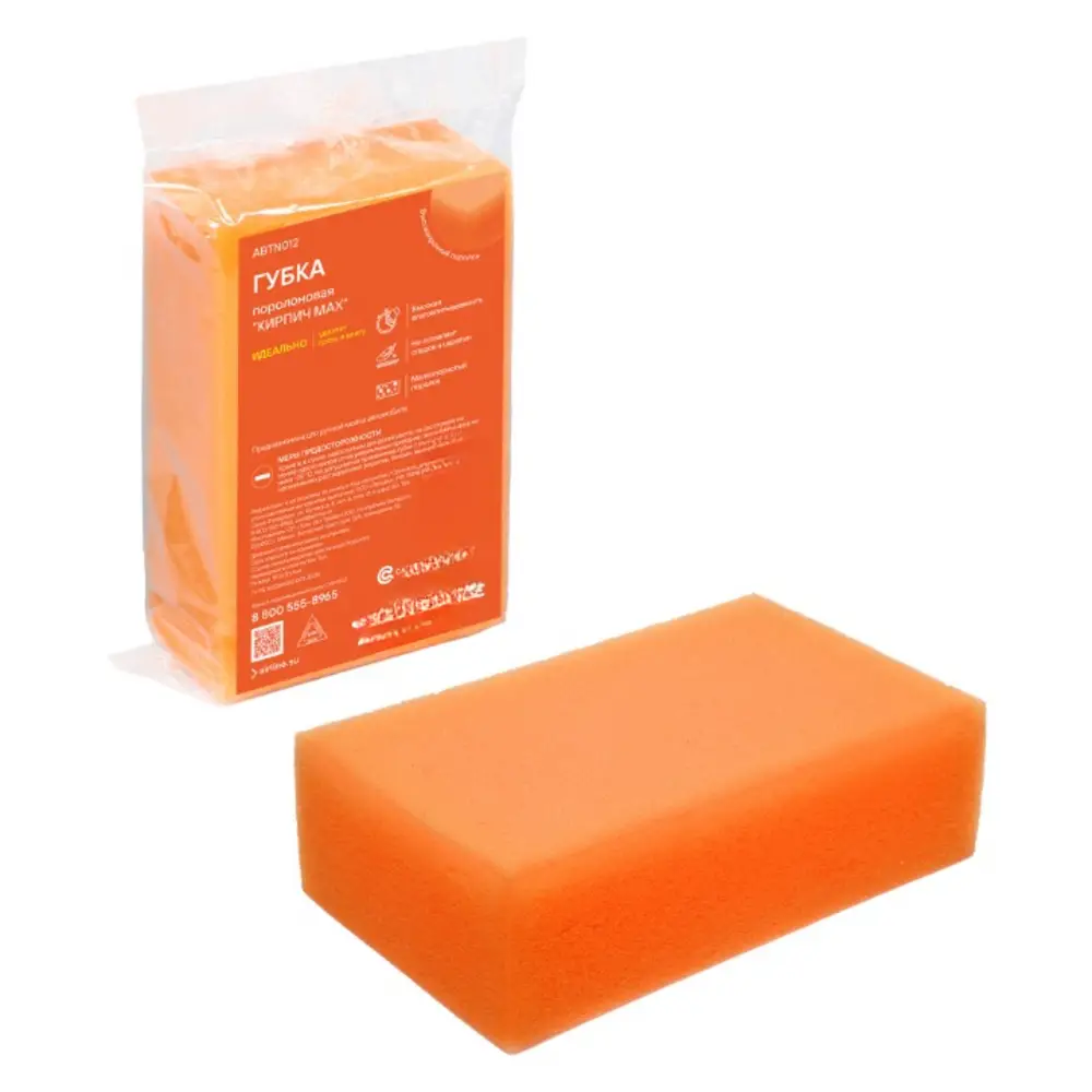 Губка поролоновая "Кирпич MAX" оранжевого цвета прямоугольной формы отличается увеличенным размером для ПРОФЕССИОНАЛЬНОГО применения. Губка изготовлена из ВЫСОКОПРОЧНОГО мелкопористого поролона - это доступное и качественное средство для избавления от загрязнений на поверхности стекол, фар и корпуса автомобиля. Губка обладает особой поверхностью, которая легко и плавно очищает автомобиль, не создавая после уборки царапин или разводов. Имеет высокую влаговпитываемость и легко отжимается, хорошо пенится.