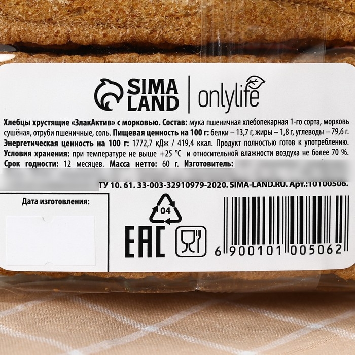 Состав: мука пшеничная хлебопекарная 1-го сорта, морковь сушёная, отруби пшеничные, соль.