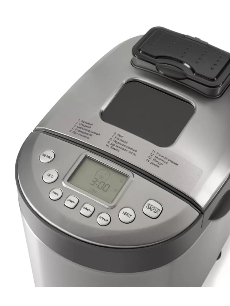 Удобство отложенного старта: Таймер отсрочки старта до 23 часов позволяет получить свежеиспеченный хлеб к нужному времени.