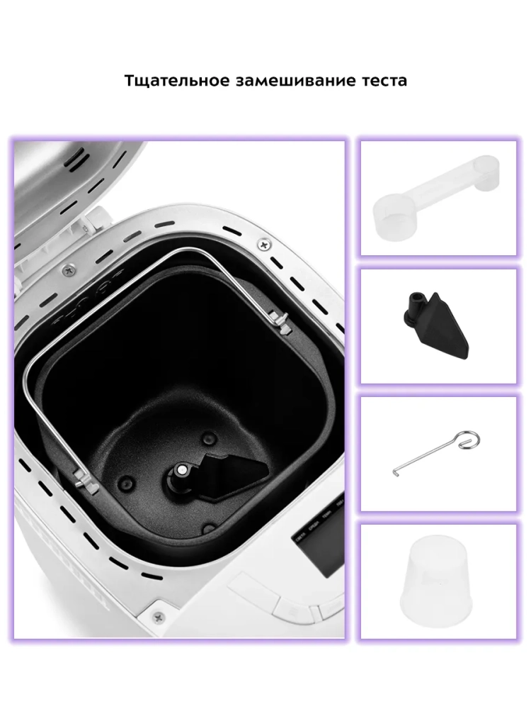Автоматическая функция замеса теста позволяет сэкономить время и силы, а мерные ложки и весы в граммах обеспечивают точность в приготовлении. Хлебопечь с замесом теста — это не просто техника, это возможность радовать себя и близких свежей выпечкой каждый день.