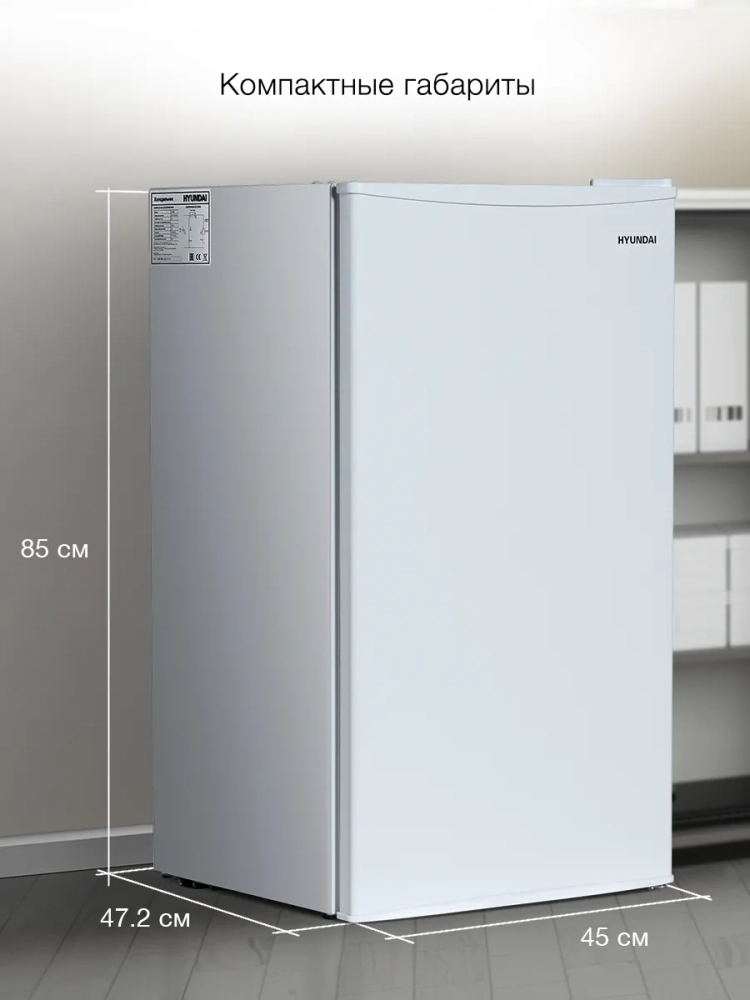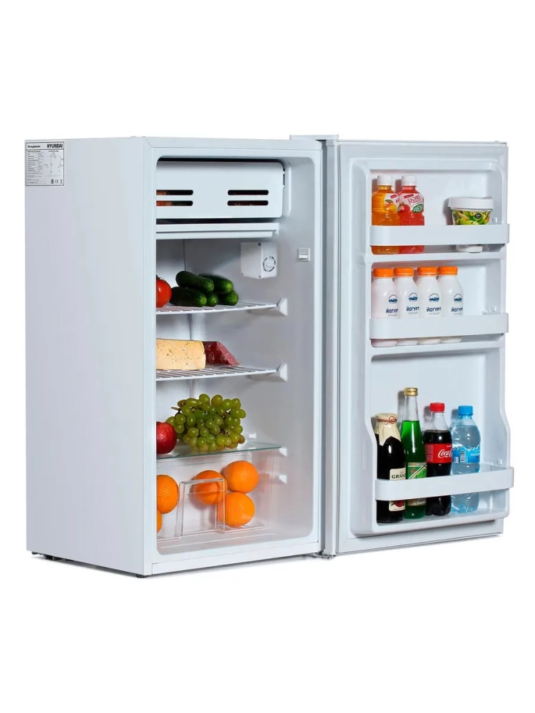 Холодильник Hyundai CO1003 белый, однокамерный, общий объем 94л, с ручной разморозкой холодильной камеры, без морозильной камеры, расположение морозильной камеры: морозильная камера отсутствует