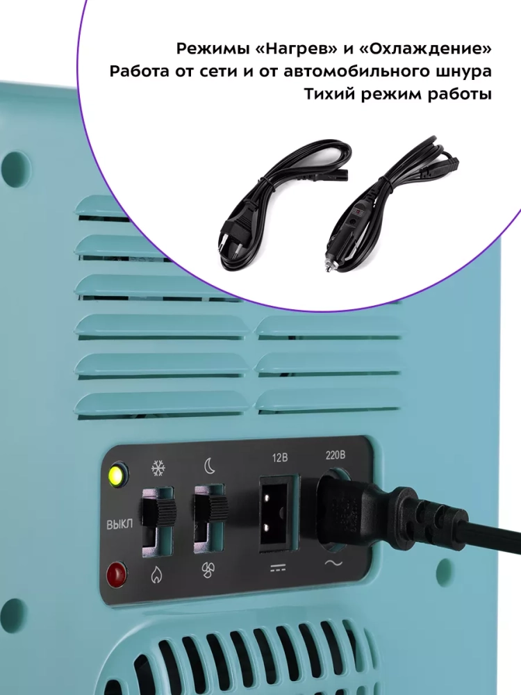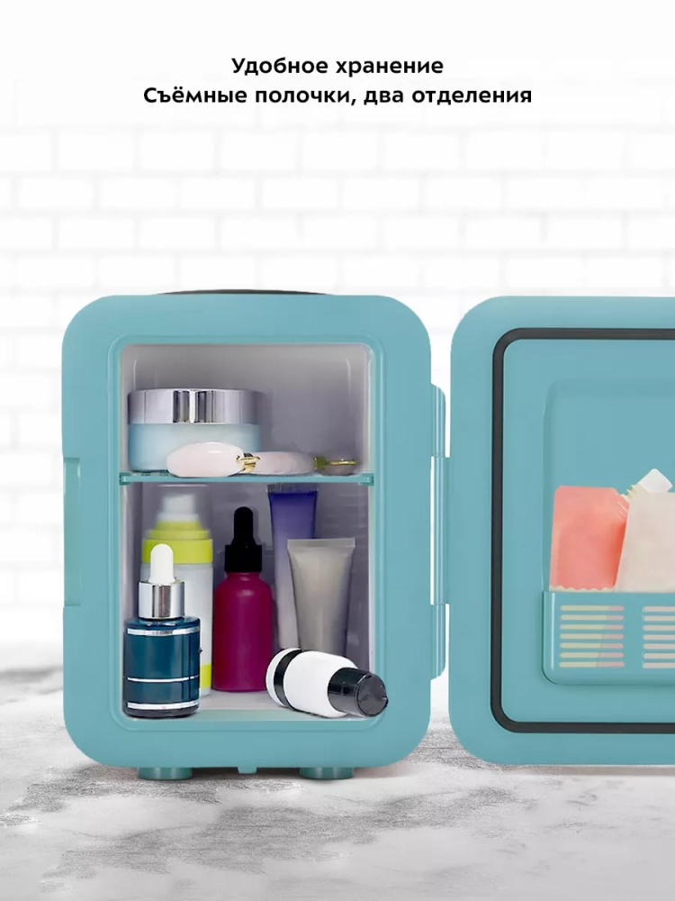 Благодаря наличию сетевого и автомобильного шнура в комплекте вы можете использовать холодильник дома или взять его в поездку на машине. Дверная полка и полка холодильной камеры позволят вам рассортировать косметику.