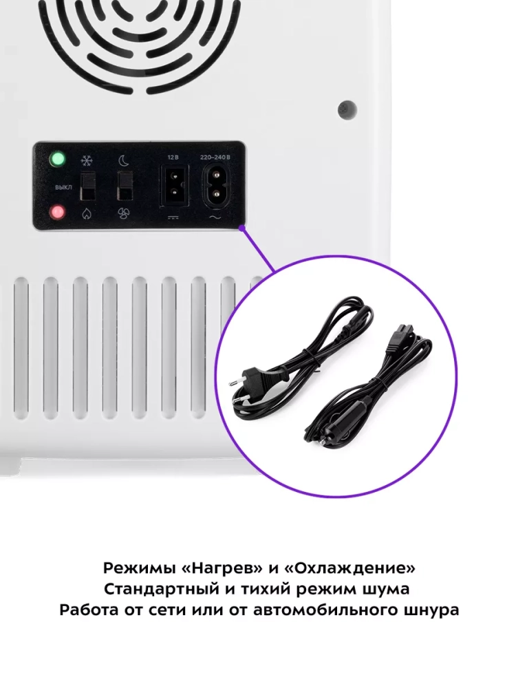 Благодаря наличию сетевого и автомобильного шнура в комплекте вы можете использовать холодильник дома или взять его в поездку на машине. Дверная полка и полки холодильной камеры позволят вам рассортировать косметику.