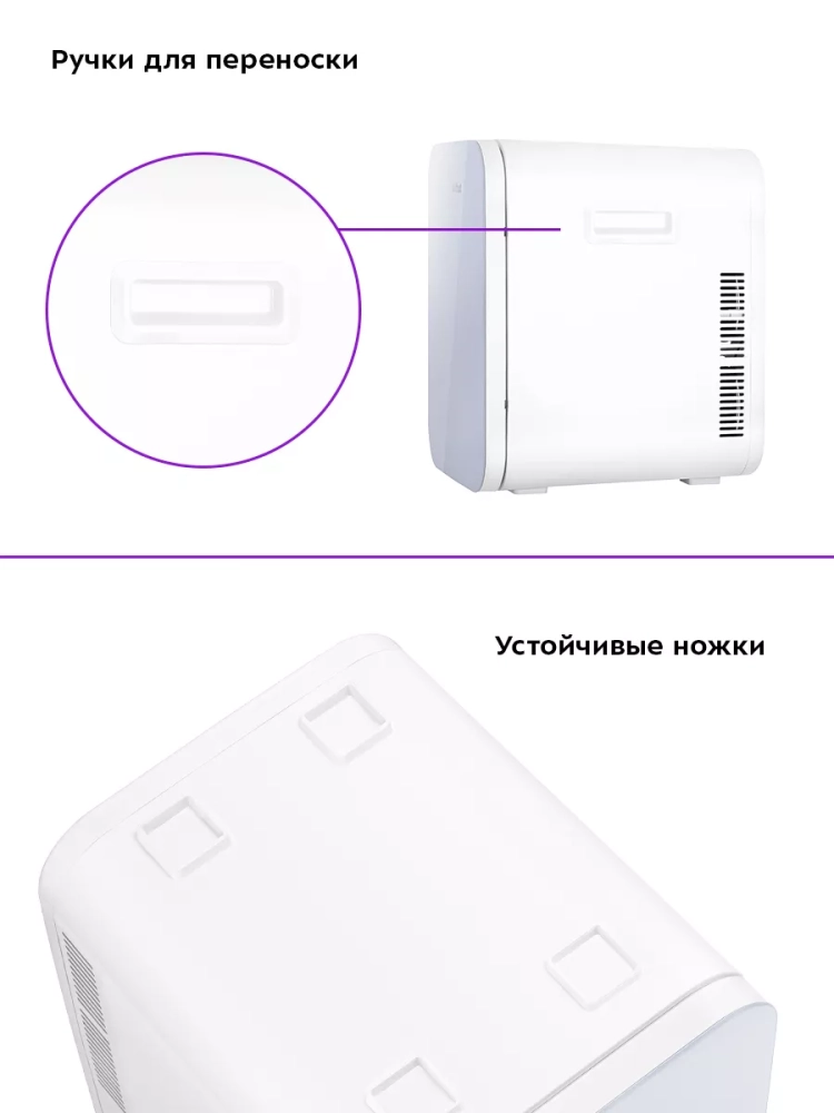 Благодаря наличию сетевого и автомобильного шнура в комплекте вы можете использовать холодильник дома или взять его в поездку на машине. Полки холодильной камеры и дверные полки позволят вам рассортировать косметику.