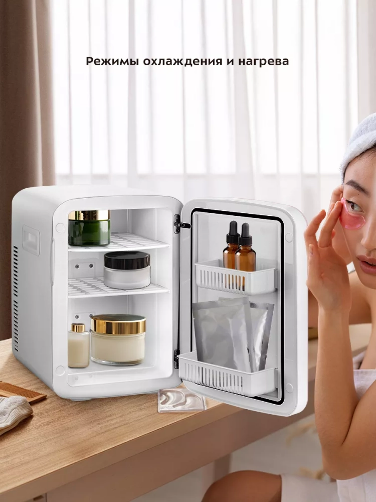 В холодильнике для косметики Kitfort KT-4118 поддерживается оптимальная температура для хранения косметических средств: кремов, сывороток, лосьонов, масок. Также у устройства есть режим нагрева, который подойдет, например, для разогрева восковых полосок, специальных масел или масок перед их использованием.