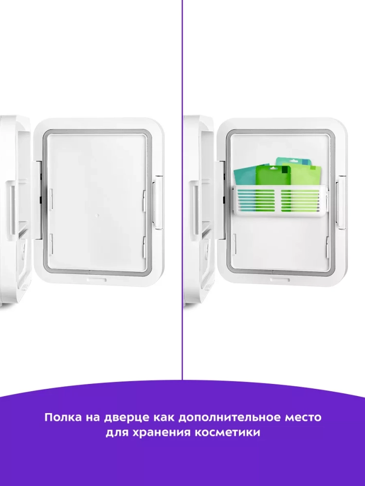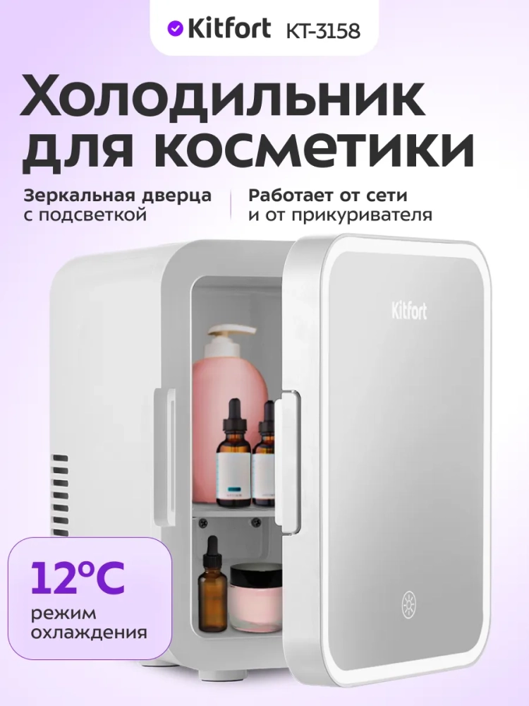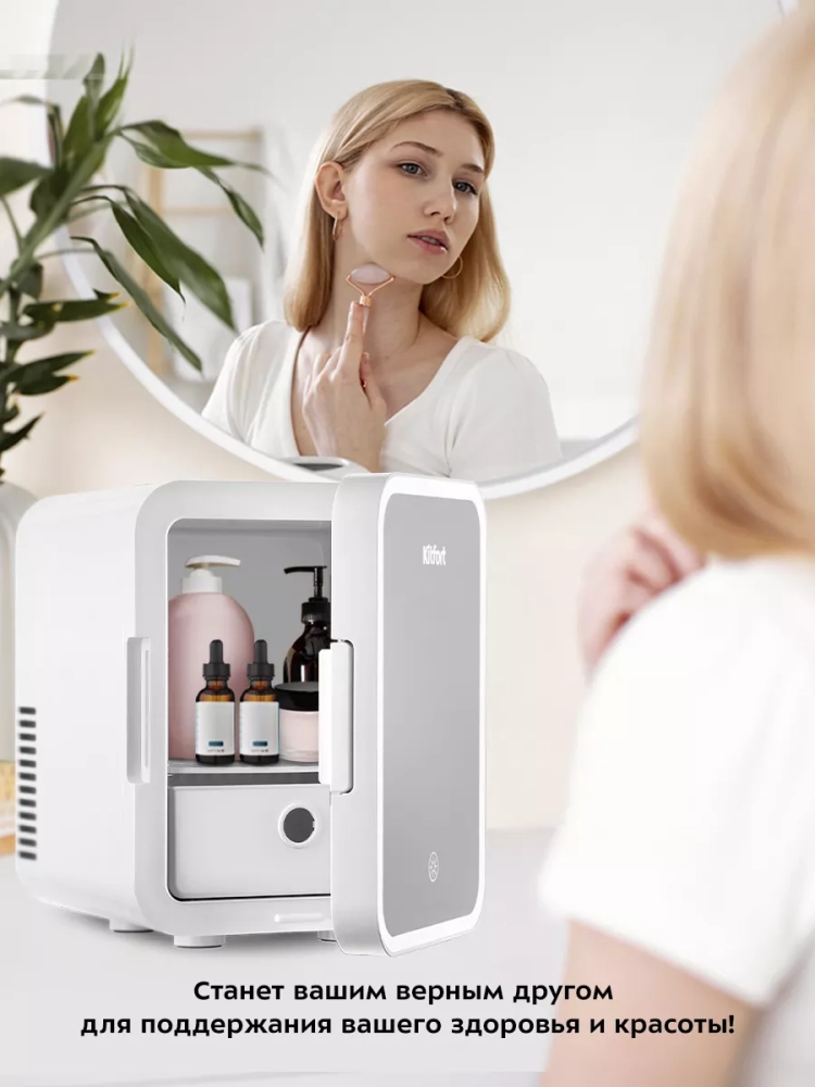 Холодильник для косметики Kitfort KT-3158 - это идеальное решение для хранения ваших косметических средств. Этот минихолодильник поддерживает оптимальную температуру от 10 до 18 °С, что особенно важно для натуральной и органической косметики. Внешняя сторона дверцы камеры оснащена зеркалом с подсветкой, которая регулируется сенсорной кнопкой и имеет три уровня яркости. Это позволяет удобно использовать холодильник как дома, так и в поездке на машине благодаря наличию блока питания и автомобильного шнура. Внутри холодильника предусмотрены полка, ящик и дверная полка, которые позволяют рассортировать вашу косметику по категориям. Хранение кремов, сывороток или лосьонов в таком устройстве помогает сохранить их свойства дольше благодаря стабильной температуре. Принцип работы основан на эффекте Пельтье: одна сторона модуля охлаждается при протекании тока через соединение проводников. Этот холодильник также подходит для хранения лекарств и аптечных мазей согласно инструкции на упаковке. Полочка способствует большей вместимости. В жаркую погоду вы можете положить в органайзер освежающие спреи или роликовые массажеры — это усилит их охлаждающий эффект. Температура охлаждения составляет 12 °С ниже окружающей среды благодаря термоизоляции из пенопласта. Энергопотребление устройства составляет 201,48 кВт*ч/год, а длина шнура блока питания — 1,8 м; автомобильного шнура — 2 м. Минихолодильник Kitfort KT-3158 станет незаменимым помощником в вашем доме для хранения разнообразных средств ухода за кожей лица и тела.