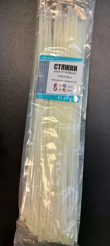 Хомут нейлоновый Eletec 370х3,6 бесцветный (100 шт).