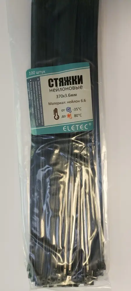 Хомут нейлоновый Eletec 370х3,6 черный (100 шт).