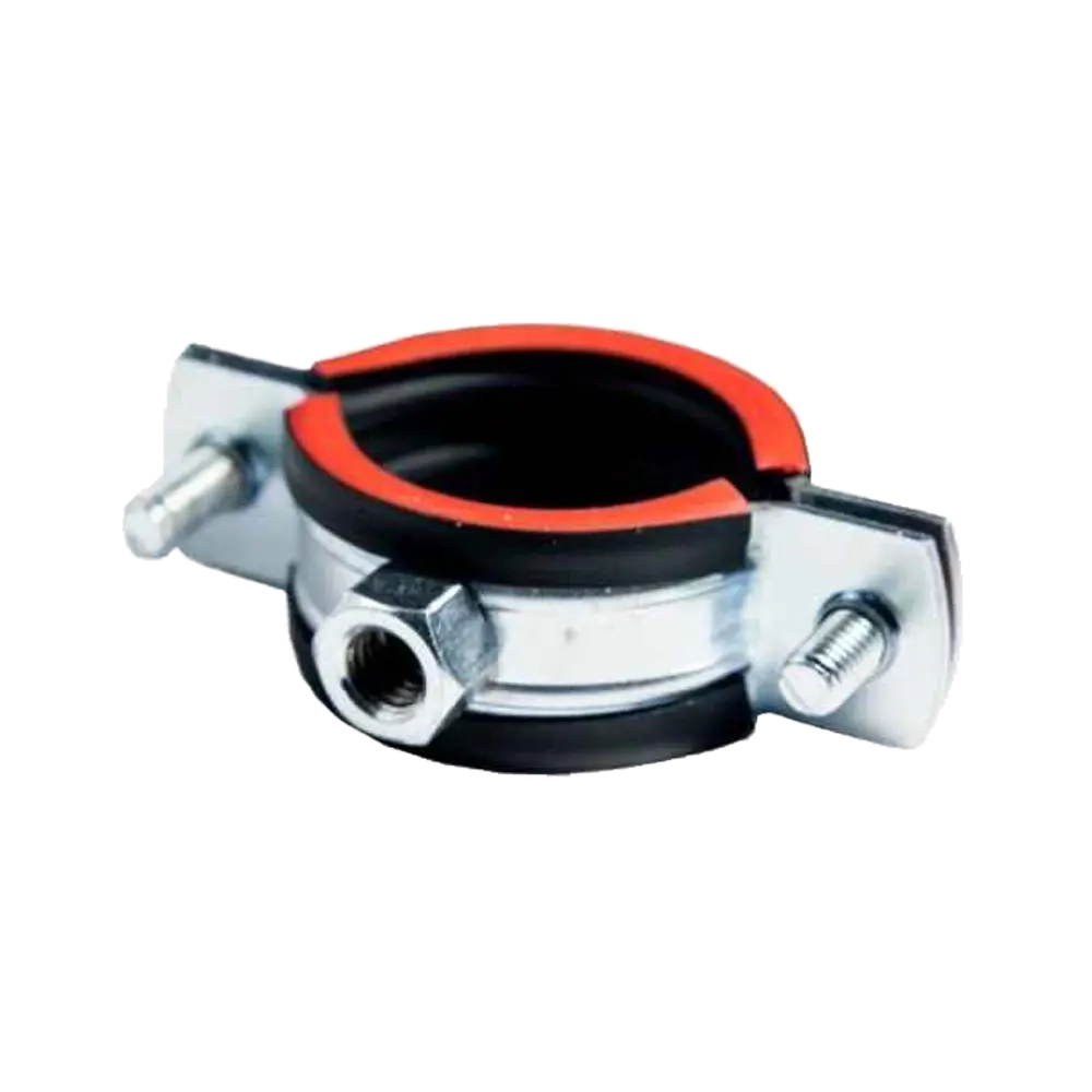Трубный хомут применяется для герметичного соединения труб и воздуховодов. Состоит из двух частей, надежно соединенных винтами со стандартной метрической резьбой. К одной из частей приварена гайка размера М8. Прокладка из резины обеспечивает вибро- и шумоизоляцию.