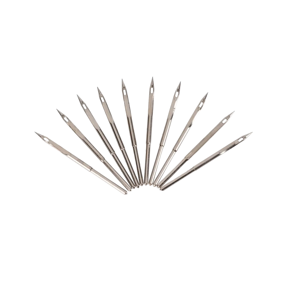 Игла – расходный материал,с помощью которого протыкается сшиваемый материал без его повреждения. С помощью иглы для мешкозашивочной машинки получается однониточный стежок. Встраивание иглы в машину должно происходить по инструкции, т.к. от этого зависит качество швов. Не нужно забывать о постоянной проверке и своевременной замене игл. При замене иглы необходимо контролировать, чтобы ниточная канавка была обращена на внешнюю сторону оборудования. Иглы для портативной машинки GK 9-8, GK 9-350, GK1800 сшивают материалы: джут, полипропилен, бумагу и другие. Номер 250-GK-9