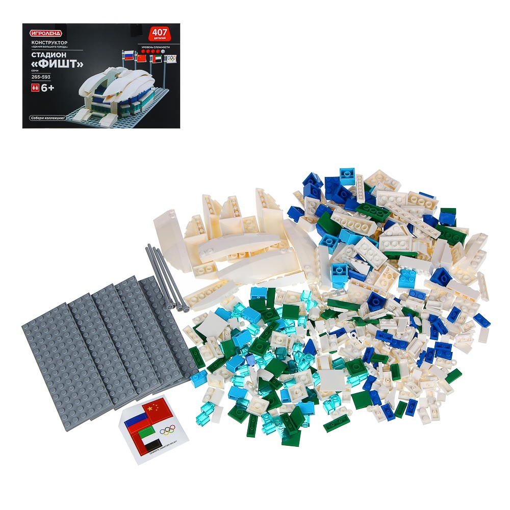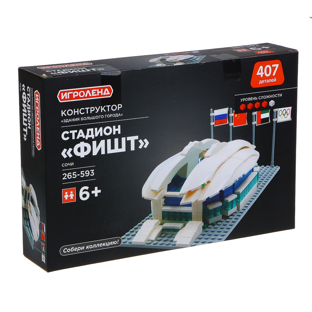 Конструктор ИГРОЛЕНД «Здания большого города» – это увлекательная игрушка, которая понравится как детям, так и взрослым. Набор предназначен для детей от 6-ти лет. Конструктор не только развивает логику и пространственное воображение, но и познакомит ребенка с важными достопримечательностями нашей страны. С помощью данного набора ребенок сможет воссоздать здание стадиона Фишт. Готовая конструкция обязательно станет украшением интерьера.