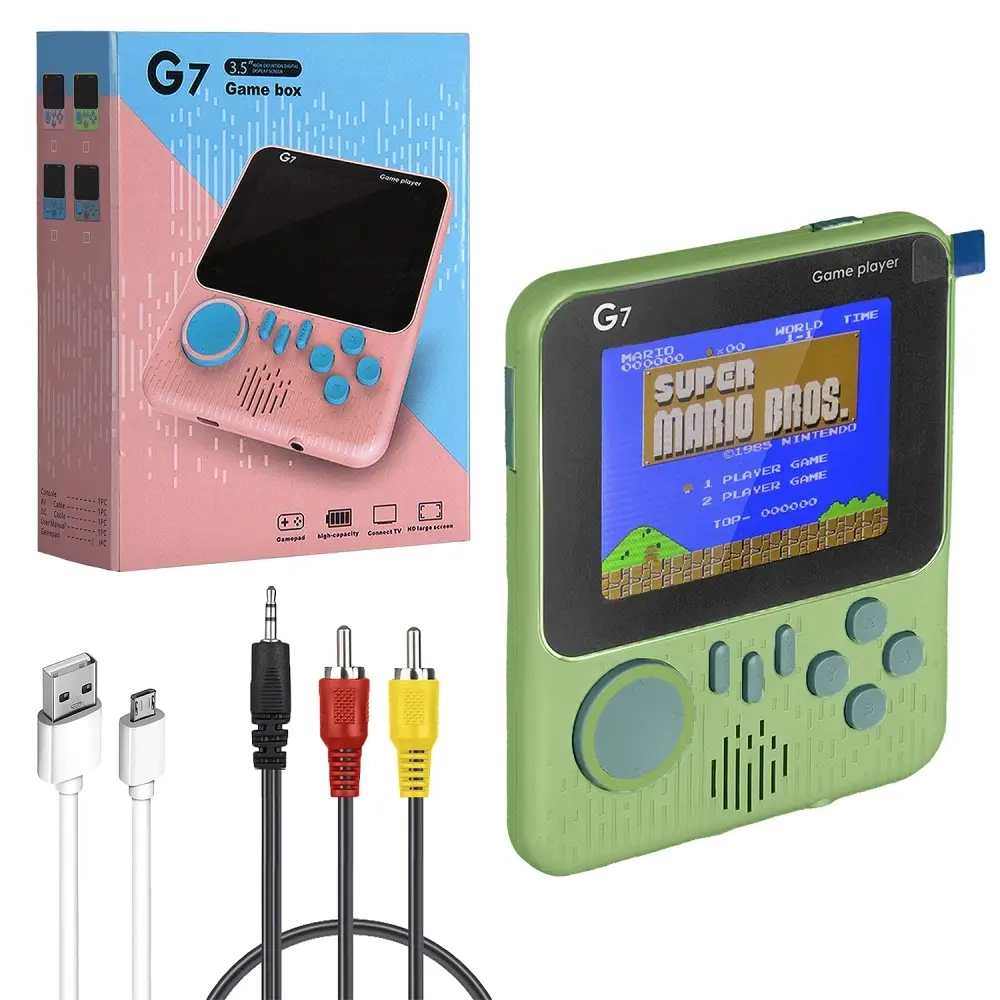 Так же в комплекте идет кабель 3,5 Jack-AV для возможности выводить приставку на экран телевизора. Для этого воткните разъём 3,5 Jack в приставку, а AV в телевизор.