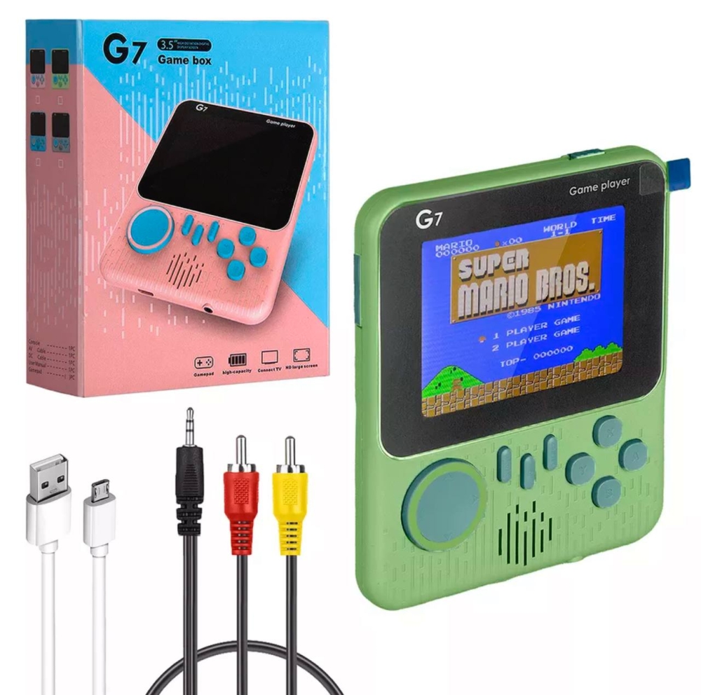 Игровая приставка G7 3.0” для 1 пользователя: наслаждайтесь играми с комфортом и стилем. Компактный размер и стильный дизайн: игровая приставка G7 3.0” специально разработана для комфортного использования и стильного внешнего вида. Благодаря компактному размеру она станет отличным дополнением к вашему игровому пространству. В данную модель встроено 666 игр. Так же в комплекте идет кабель 3,5 Jack-AV для возможности выводить приставку на экран телевизора. Для этого воткните разъём 3,5 Jack в приставку, а AV в телевизор. Экран - 3,5 дюймовый ЖК. Рекомендуемая мощность зарядки - 5V - 1А. Ёмкость аккумулятора - 500 мАч. Комплектация: Игровая приставка - 1 шт; Кабель USB - MicroUSB - 1 шт; Кабель 3,5 Jack - AV - 1 шт; Инструкция ( на английском и китайском языках ) - 1 шт.