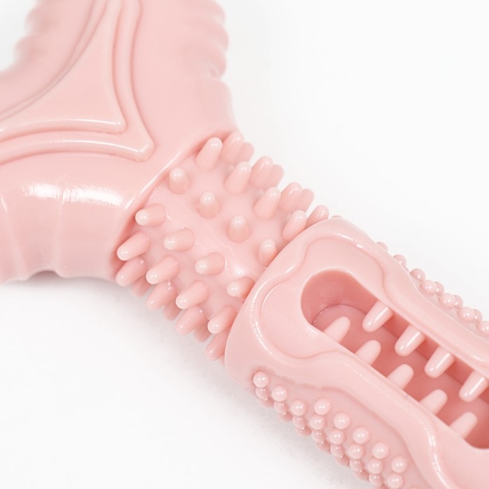 Игрушка для лакомств и сухого корма "Кость", TPR, массажная, 14,5 х 3,5 см, розовая